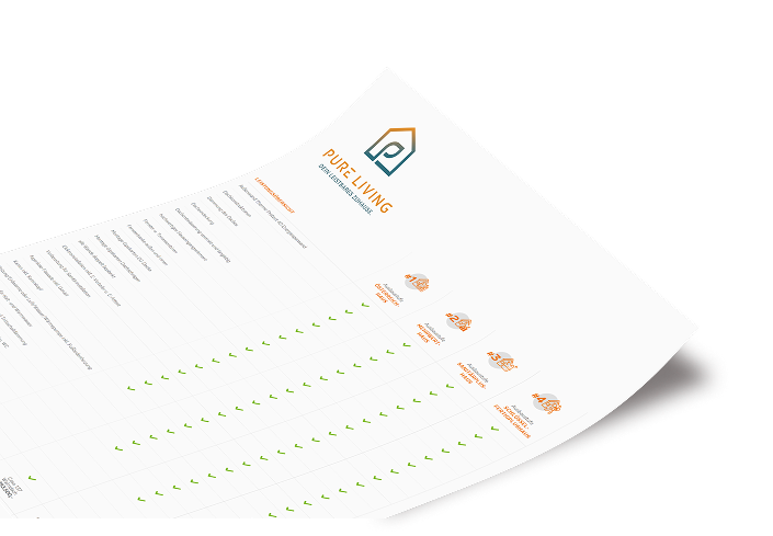 Erlebe Pure Living so realistisch wie möglich in unserem virtuellen Rundgang. Gehe von Raum zu Raum oder wähle einzelne Bereiche direkt aus, um dir ein Bild von deinem neuen Zuhause zu machen.